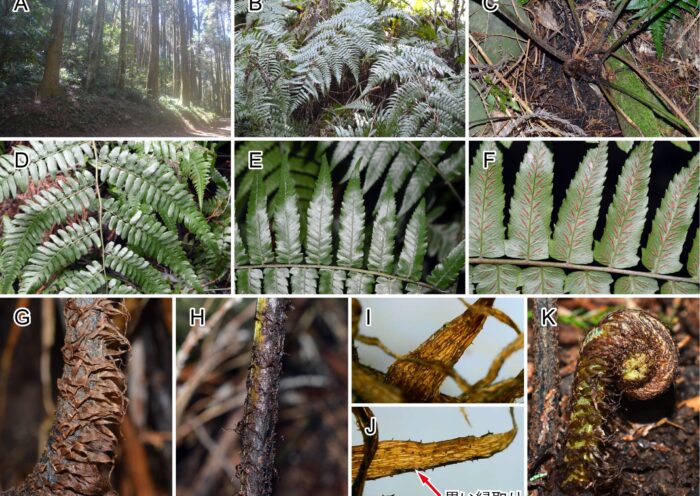2014年9月16日,鹿児島県薩摩川内市藤本にて,ニセヒロハノコギリシダの標本を採取していた.2025年3月17日と4月4日に詳しい生育状況調査を実施したので報告する. ニセヒロハノコギリシダ(Diplazium dil…