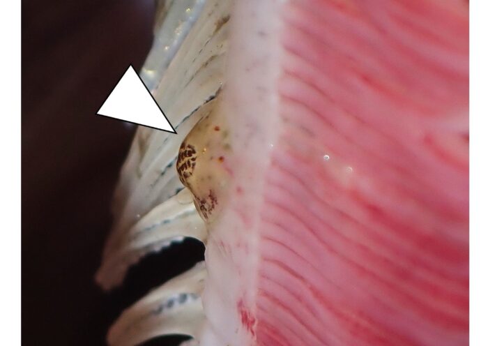 An undescribed pyramidellid mollusk species, but well-known in its auriform shell, was found living in chaetop…