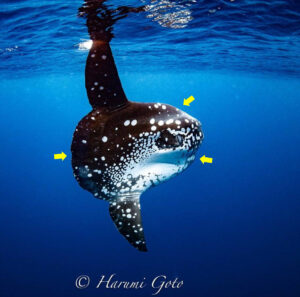 加計呂麻島沖の水中で撮影されたウシマンボウの記録